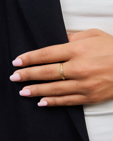 This bold sterling silver braided twist band is sure to become your new favorite ring! Add this intricate accessory to any outfit -- it's available in gold, silver, and rose gold tones.