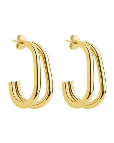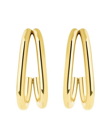 A sculptural double loop with fluid curves, these hoops bring a fresh take on form and movement. Bold yet wearable, they're your new everyday statement.